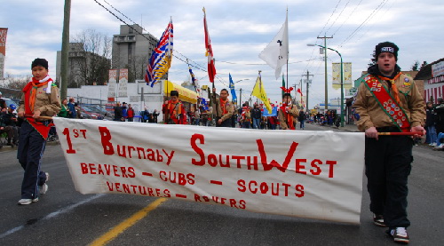 Welcome! This is the 1st South West Burnaby Scouts' Homepage! If you would like to learn what's new in the 1st Scouts group then go to the Newsroom. If you would like to get information about camps, lists, and other stuff , go to Information. And if you'd like to see the pictures about what we've been doing then go to the Gallery page!